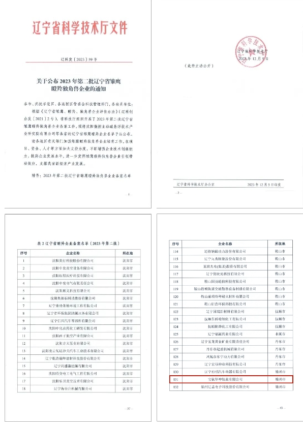 公司入選2023年遼寧省瞪羚企業名單